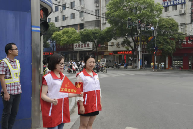 早上7點,正值交通高峰期。在城區(qū)民主路的這處十字路口,金松集團的3名志愿者身著統(tǒng)一服裝,站在紅綠燈路口處,面帶微笑勸導(dǎo)行人和車輛遵守交通規(guī)則,幫助執(zhí)勤民警維持交通秩序,成為城市的一道靚麗風(fēng)景。而這次文明交通勸導(dǎo)活動,為培育文明風(fēng)尚,提升市民文明素質(zhì)起到了示范、宣傳、勸導(dǎo)和監(jiān)督作用。
