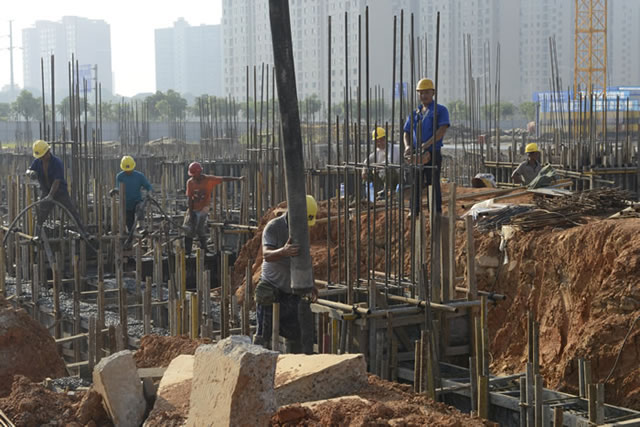 在松江花園項目現(xiàn)場,上百名施工人員在炎炎烈日下?lián)]灑著汗水,奮戰(zhàn)在工地。該項目主要服務于稻谷溪濕地公園雙征安置,總投資約4500萬元,目前1號至5號樓的主體工程建設已全面鋪開,預計今年底完成主體結構,2018年2月主體封頂。