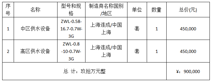 二、項(xiàng)目名稱:湖北松滋金投置業(yè)有限公司金投•奧體莊園項(xiàng)目無(wú)負(fù)壓供水設(shè)備項(xiàng)目