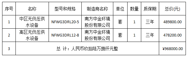 二、項(xiàng)目名稱:湖北松滋金投置業(yè)有限公司金投•奧體莊園項(xiàng)目無負(fù)壓供水設(shè)備項(xiàng)目(第二次)
